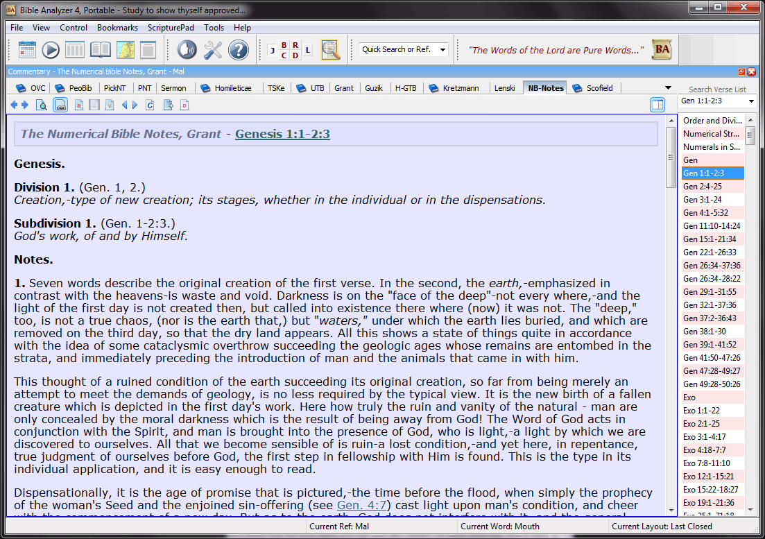 said,"In The Numerical Bible, Grant shows that the Bible is organized in much the same way as nature. The precision of numbers and the laws of mathematics, which undergirds the order of the universe, also undergirds the order of Scripture. Like the rest of the nature, Scripture exhibits traits of order, structure, and symbol. In fact, the numbers and the very structure of the Bible contain elements of divine revelation."Since Grant was heavily influenced by the Plymouth Brethren, his approach to the Scriptures was Fundamental and Dispensational. "Later authors such as Tim LaHaye and Hal Lindsey and famous preachers such as Harry A. Ironside are indebted to Grant’s interpretation of Scripture and his careful analysis of biblical structure and symbolism." The Bible Analyzer Numerical Bible Collection not only includes all the notes and commentary from the printed edition of the seven volume Numerical Bible, it also includes five of Grant's most notable books. Included is,